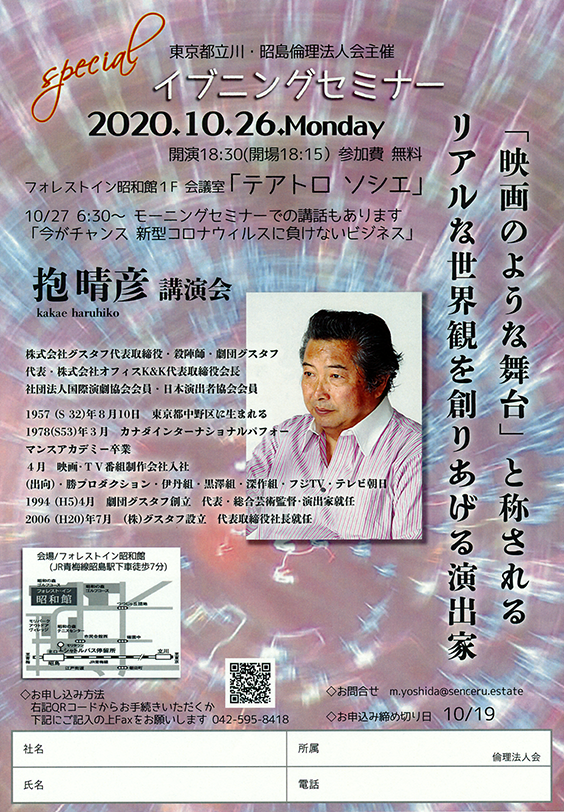10月26日イブニングセミナー「抱晴彦講演会」を開催します。