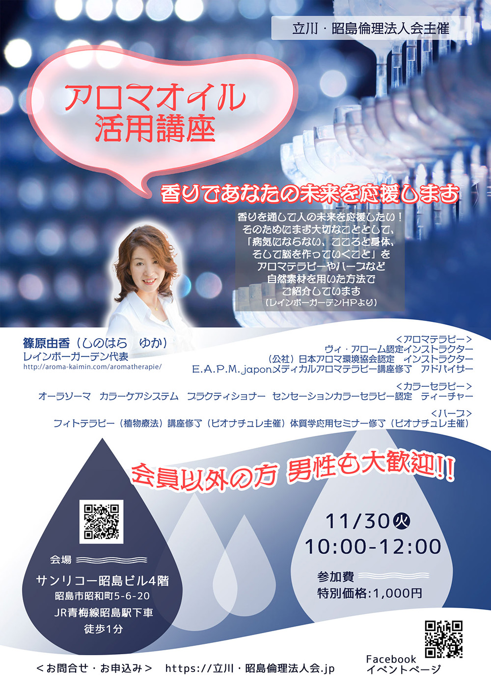 香りであなたの未来を応援します。アロマオイル活用講座です。